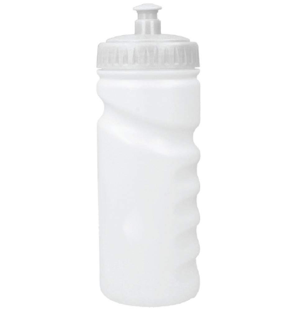 Sport-Trinkflasche aus BPA freiem, solidem PE Kunststoff. Mit praktischen Griffteil. Füllmenge: 500 ml.