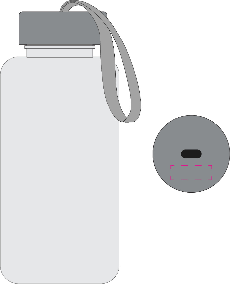 Wunderschöne geschmacksneutrale Trinkflasche aus robustem TritanTM und einem Deckel aus Edelstahl mit Schlaufe. Die große Öffnung ermöglicht ein leichtes Befüllen und Reinigen der Flasche. Der Verschluss ist leicht zu öffnen, auslaufsicher und für kohlensäurehaltige Getränke geeignet. Füllvolumen: 0,4 Liter.Material: KunststoffMaße: 0 x 0 x 0 x Ø: 65,00 mmGewicht: 68 gHinweis: Für den Deckel ist Handwäsche empfohlen. Beim Spülen in der Spülmaschine kann der Druck beschädigt werden. Ein Verblassen oder Verwischen der Farben ist möglich DruckmöglichkeitenPosition 1: RundumDruckart: SiebdruckDruckgruppe: DGMaximale Farben: 5Breite: 180 mmHöhe: 100 mmPosition 3: RundumDruckart: Premio TouchDruckgruppe: PTAMaximale Farben: 5Breite: 210 mmHöhe: 110 mmPosition 4: Auf DeckelDruckart: LasergravurDruckgruppe: L1Maximale Farben: 1Breite: 28 mmHöhe: 10 mmPosition 5: Seitlich auf DeckelDruckart: LasergravurDruckgruppe: L1Maximale Farben: 1Breite: 38 mmHöhe: 18 mmFarbe: Transparent