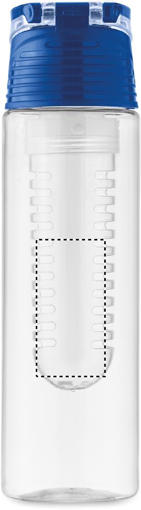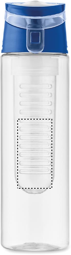 Trinkflasche aus RPET mit entnehmbarem Frucht-Aromafach. Henkel und auslaufsicherer Deckel. Füllmenge: 500 ml.