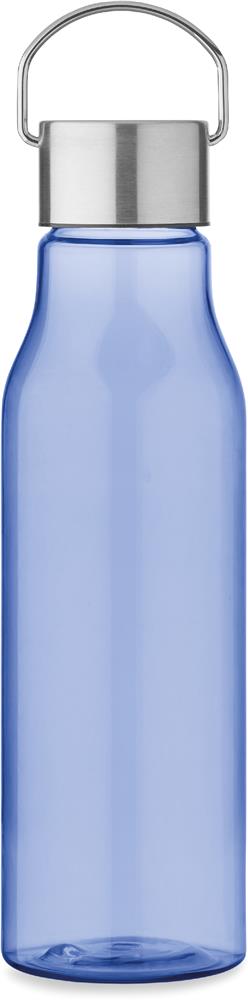 Trinkflasche aus BPA-freiem RPET. Verschluss aus Edelstahl mit Henkel. Auslaufsicher. Füllmenge: 600 ml.