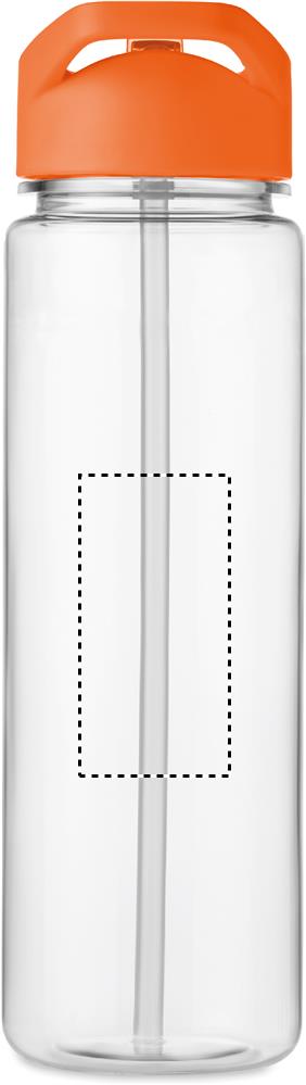 Trinkflasche aus RPET. Klappbares Mundstück aus PP mit Trinkhalm. Füllmenge: 650ml. Nicht für kohlensäurehaltige Getränke geeignet.Material: RPETMaße: Ø6.5x23.5cmGewicht: 0.114 kgVeredelung: Bestickung, Bedruckung, BeflockungHandling/Farbcodes: B/03, 05, 06, 10, 37, 48Druckposition: 360Druckmaße: 223 x 170 mmDrucktechniken: RD1Druckposition: ROUNDSCREENDruckmaße: 160 x 120 mmDrucktechniken: DL, RS4Druckposition: FRONTDruckmaße: 35 x 70 mmDrucktechniken: P4Druckposition: BACKDruckmaße: 35 x 70 mmDrucktechniken: P4