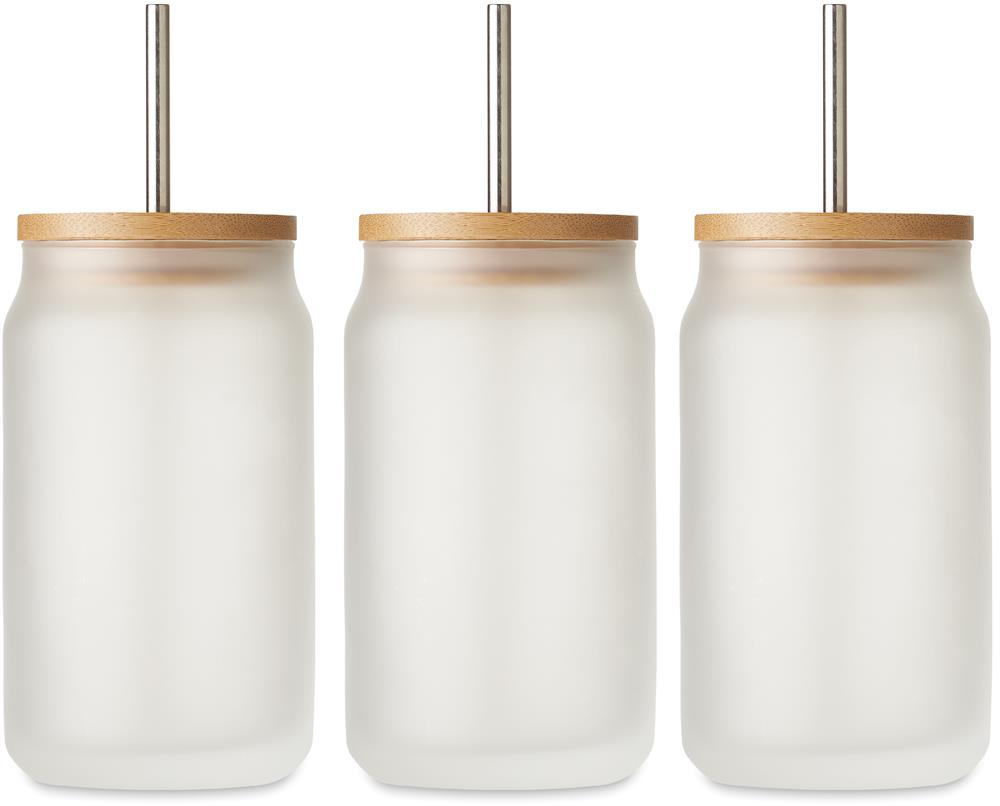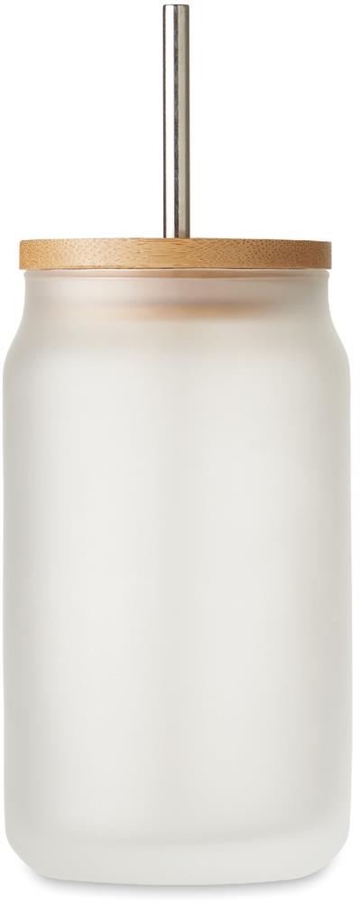 Trinkglas mit Bambusdeckel. Inkl. Trinkhalm aus Edelstahl. Spezielle Beschichtung für Sublimationsdruck. Füllmenge: 400 ml. Bambus ist ein natürliches Produkt, es kann daher zu leichten Abweichungen in Farbe, Dekor und Maßen kommen.