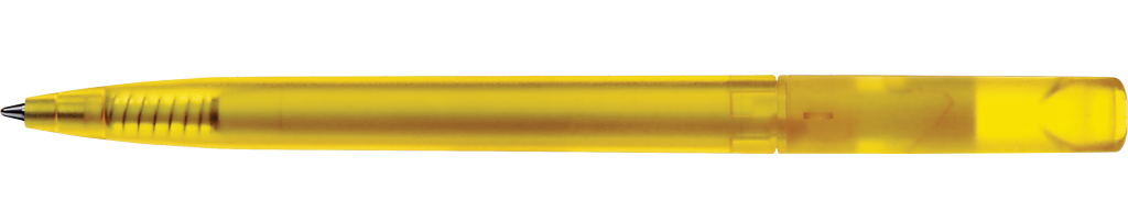 Drehkugelschreiber mit transparent gefrostetem Gehäuse.