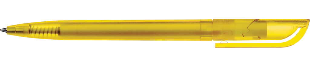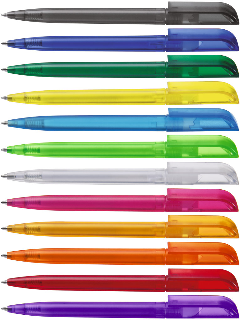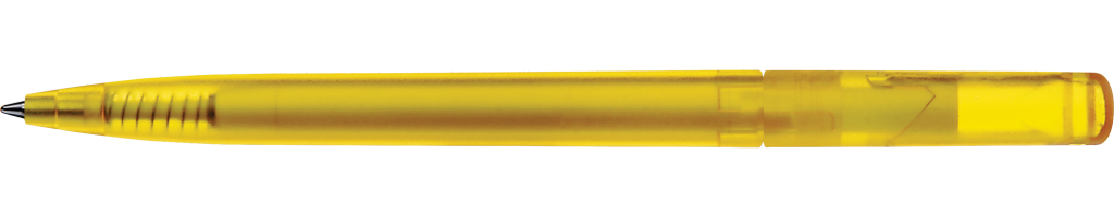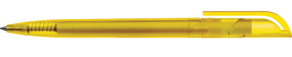 Drehkugelschreiber mit transparent gefrostetem Gehäuse.Druckbereich: Auf dem Clip 26mm x 8mm Tampondruck (T), in Clipverlängerung 50mm x 20mm Siebdruck (S), gegenüber vom Clip 50mm x 13mm Siebdruck (S), seitlich vom Clip 50mm x 13mm Siebdruck (S)