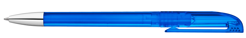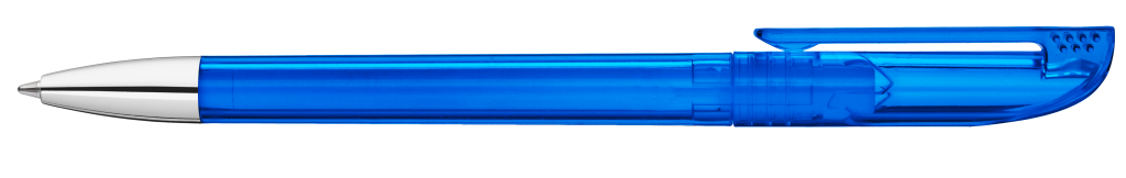 Drehkugelschreiber mit transparent glänzendem Gehäuse, gefrosteter Clipoberfläche und Spitze glanzverchromt.Druckbereich: Auf dem Clip 43mm x 6mm Siebdruck (S), in Clipverlängerung 45mm x 20mm Siebdruck (S), gegenüber vom Clip 45mm x 20mm Siebdruck (S), seitlich vom Clip 45mm x 20mm Siebdruck (S)