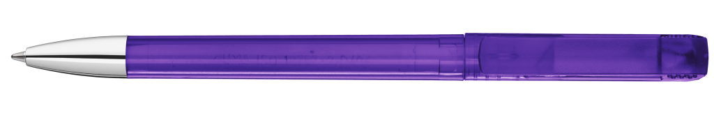 Drehkugelschreiber mit transparent glänzendem Gehäuse, gefrosteter Clipoberfläche und Spitze glanzverchromt.Druckbereich: Auf dem Clip 43mm x 6mm Siebdruck (S), in Clipverlängerung 45mm x 20mm Siebdruck (S), gegenüber vom Clip 45mm x 20mm Siebdruck (S), seitlich vom Clip 45mm x 20mm Siebdruck (S)