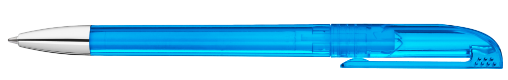 Drehkugelschreiber mit transparent glänzendem Gehäuse, gefrosteter Clipoberfläche und Spitze glanzverchromt.Druckbereich: Auf dem Clip 43mm x 6mm Siebdruck (S), in Clipverlängerung 45mm x 20mm Siebdruck (S), gegenüber vom Clip 45mm x 20mm Siebdruck (S), seitlich vom Clip 45mm x 20mm Siebdruck (S)