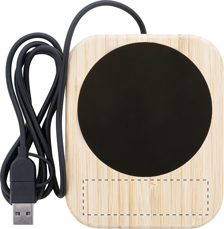 USB-Tassenwärmer im Bambusgehäuse. Inkl. USB-Ladekabel.
