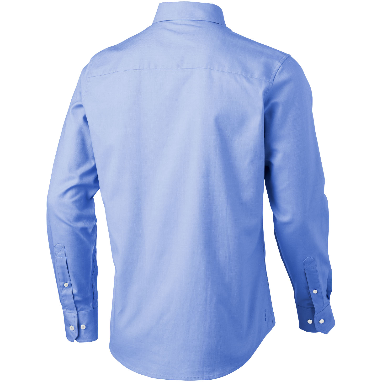 Offene, spitze Brusttasche linksPflegeleichtLange Ärmel mit KnopfmanschettenWRAP-ZertifizierungMaterial: 65% Polyester, 35% BaumwolleGrammatur: 105 g/m²Gewicht: 0.335Hergestellt nach: Faire Arbeitsbedingungen, Oeko-Tex 100Veredelung: Bestickung, Bedruckung, Beflockung