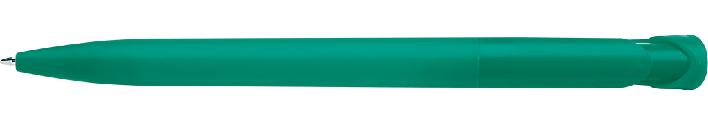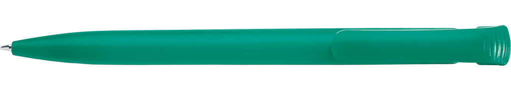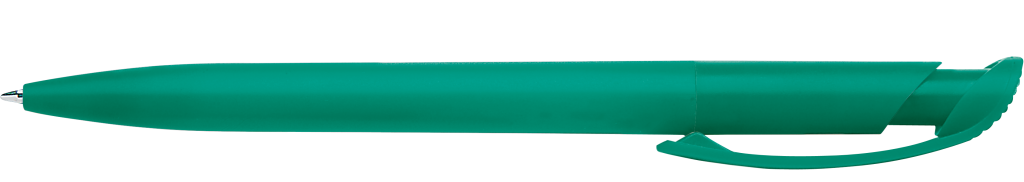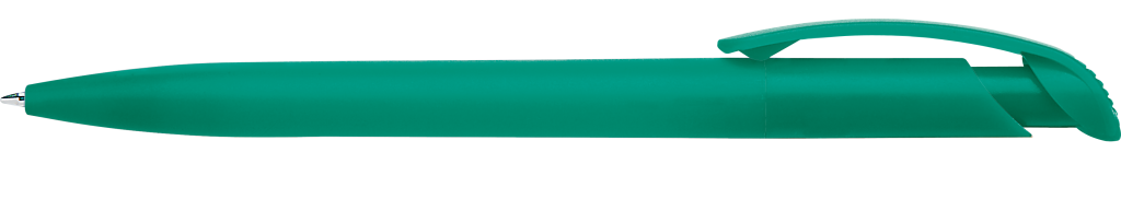 Druckkugelschreiber mit gedeckt mattem Gehäuse und Bogenclipdrücker.Druckbereich: Auf dem Clip 30mm x 7mm Tampondruck (T), in Clipverlängerung 50mm x 20mm Siebdruck (S), gegenüber vom Clip 50mm x 20mm Siebdruck (S), seitlich vom Clip 50mm x 20mm Siebdruck (S)