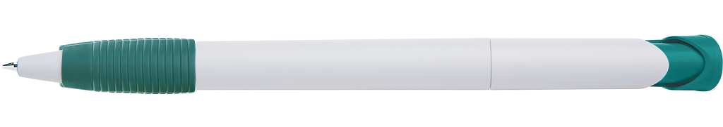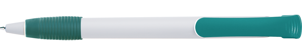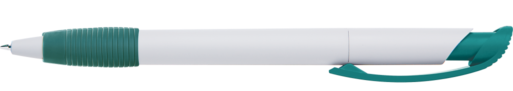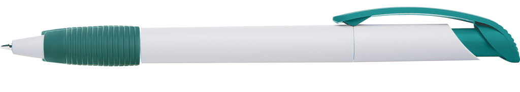 Druckkugelschreiber mit gedeckt mattem Gehäuse, Bogenclipdrücker und Gummigriffzone.Druckbereich: Auf dem Clip 30mm x 7mm Tampondruck (T), in Clipverlängerung 35mm x 20mm Siebdruck (S), gegenüber vom Clip 35mm x 20mm Siebdruck (S), seitlich vom Clip 35mm x 20mm Siebdruck (S)