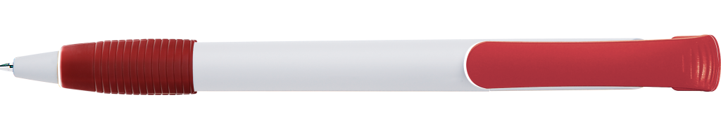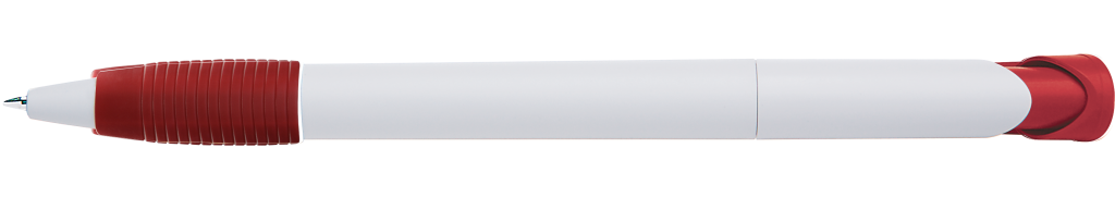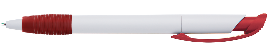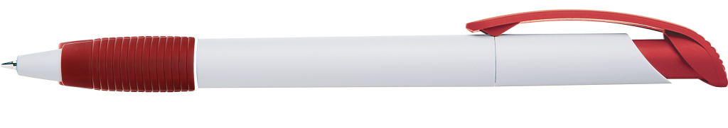Druckkugelschreiber mit gedeckt mattem Gehäuse, Bogenclipdrücker und Gummigriffzone.Druckbereich: Auf dem Clip 30mm x 7mm Tampondruck (T), in Clipverlängerung 35mm x 20mm Siebdruck (S), gegenüber vom Clip 35mm x 20mm Siebdruck (S), seitlich vom Clip 35mm x 20mm Siebdruck (S)