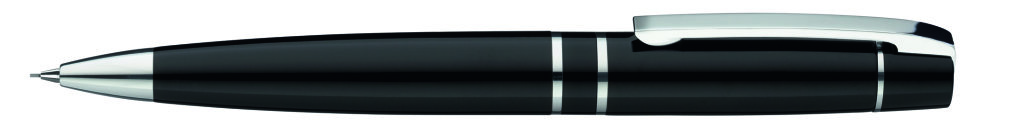 Metall-Drehbleistift (0,7mm) mit gefedertem Clip. Beschlagteile glanzverchromt.