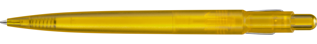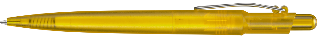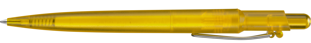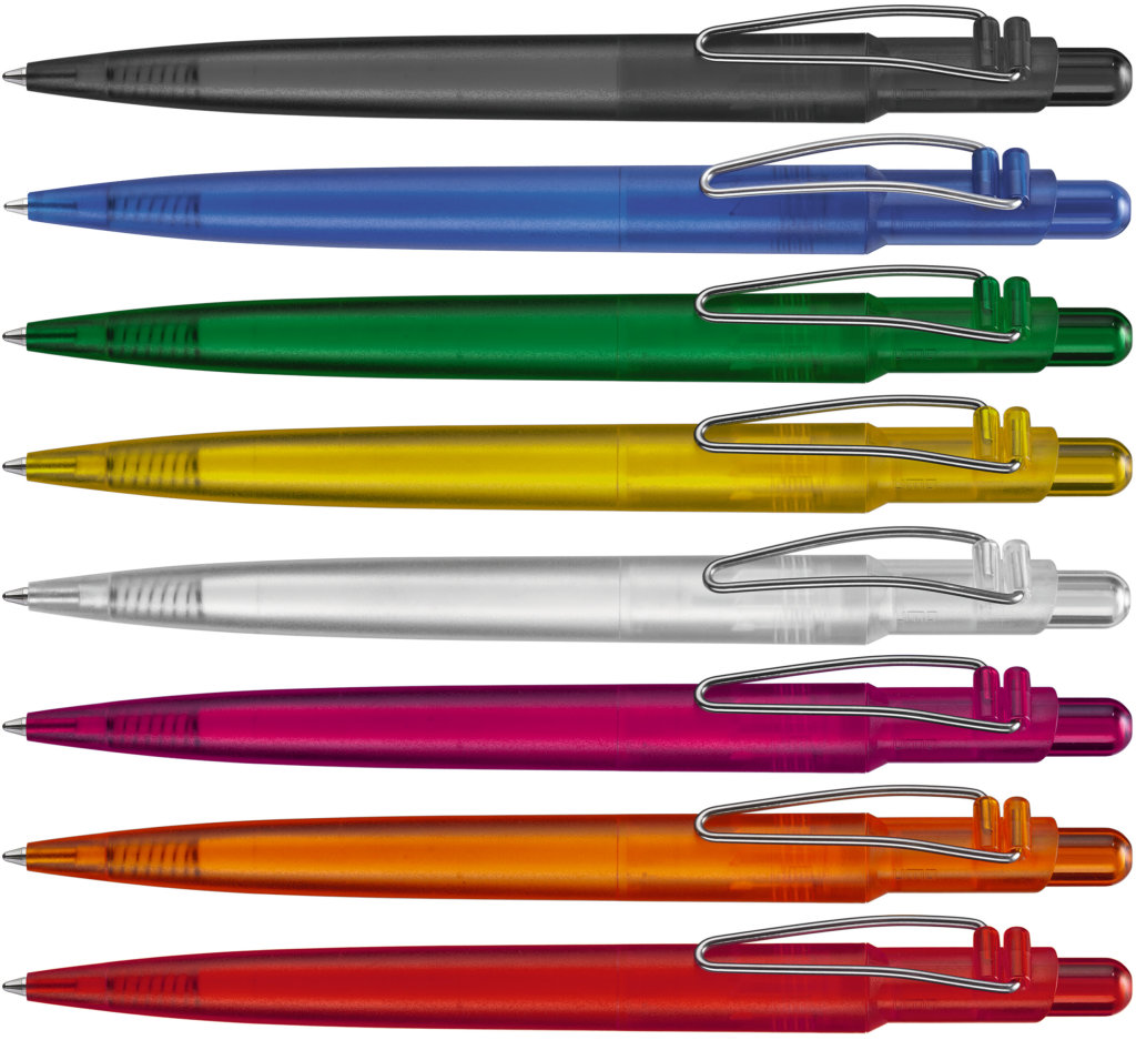 Druckkugelschreiber mit transparent gefrostetem Gehäuse und vernickeltem Metallbiegeclip. Designed in Deutschland, gefertigt in der Schweiz, zusammengefügt und veredelt im Schwarzwald.Druckbereich: In Clipverlängerung 40mm x 16mm Siebdruck (S), gegenüber vom Clip 55mm x 16mm Siebdruck (S), seitlich vom Clip 55mm x 16mm Siebdruck (S)