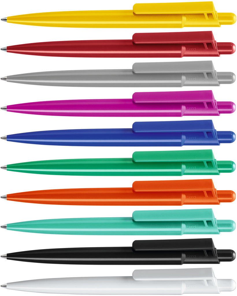 Farbiger Kugelschreiber aus Kunststoff, schwarzschreibend.Maße: ø10×138 mmSchreibgerät-Typ: KugelschreiberSchreibgerät-Mechanik: DruckmechanikSchreibfarbe: SchwarzMinentyp: Normale MineLinienstärke: 1 mmMaterial: KunststoffVeredelungsposition 1: Korpus - rechts vom ClipTechnologie: TampondruckMaximale Farben: 4Durchmesser: 0Druckcode: P0Technologie: TampondruckMaximale Farben: 1Durchmesser: 0Druckcode: P1Technologie: UV LED DruckDurchmesser: 0Druckcode: UVAVeredelungsposition 2: Korpus - links vom ClipTechnologie: TampondruckMaximale Farben: 4Durchmesser: 0Druckcode: P0Technologie: TampondruckMaximale Farben: 1Durchmesser: 0Druckcode: P1Technologie: UV LED DruckDurchmesser: 0Druckcode: UVAVeredelungsposition 3: KlipTechnologie: TampondruckMaximale Farben: 4Durchmesser: 0Druckcode: P0Veredelungsposition 4: Korpus - in Verlängerung vom ClipTechnologie: TampondruckMaximale Farben: 4Durchmesser: 0Druckcode: P0