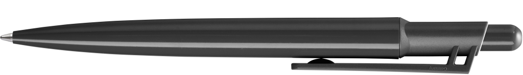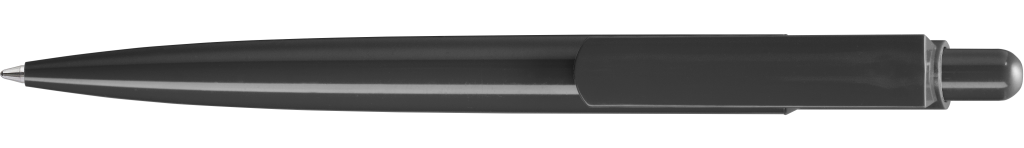 Druckkugelschreiber mit gedeckt glänzendem Gehäuse und großem Clip an verstärkter Clipanbindung.