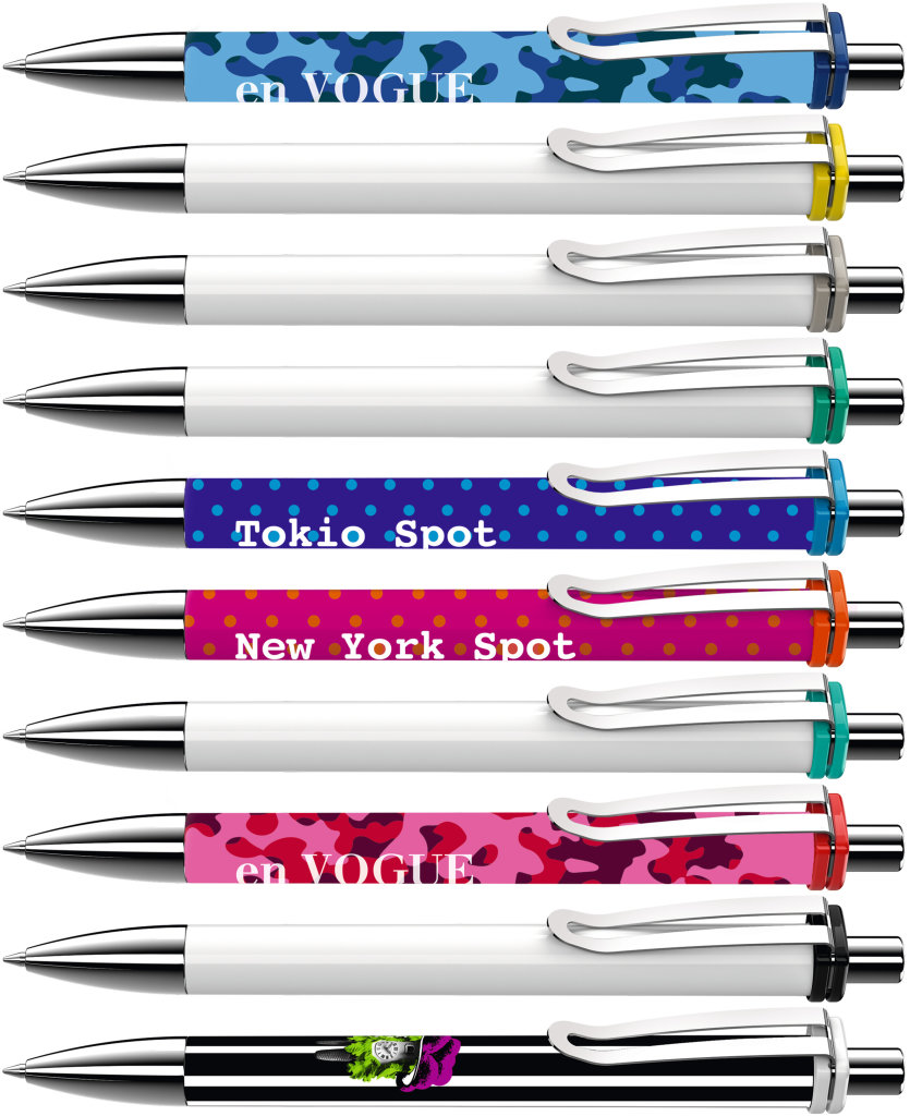 Druckkugelschreiber VOGUE XL SI mit digitalem Folientransferdruck auf dem Schaft.