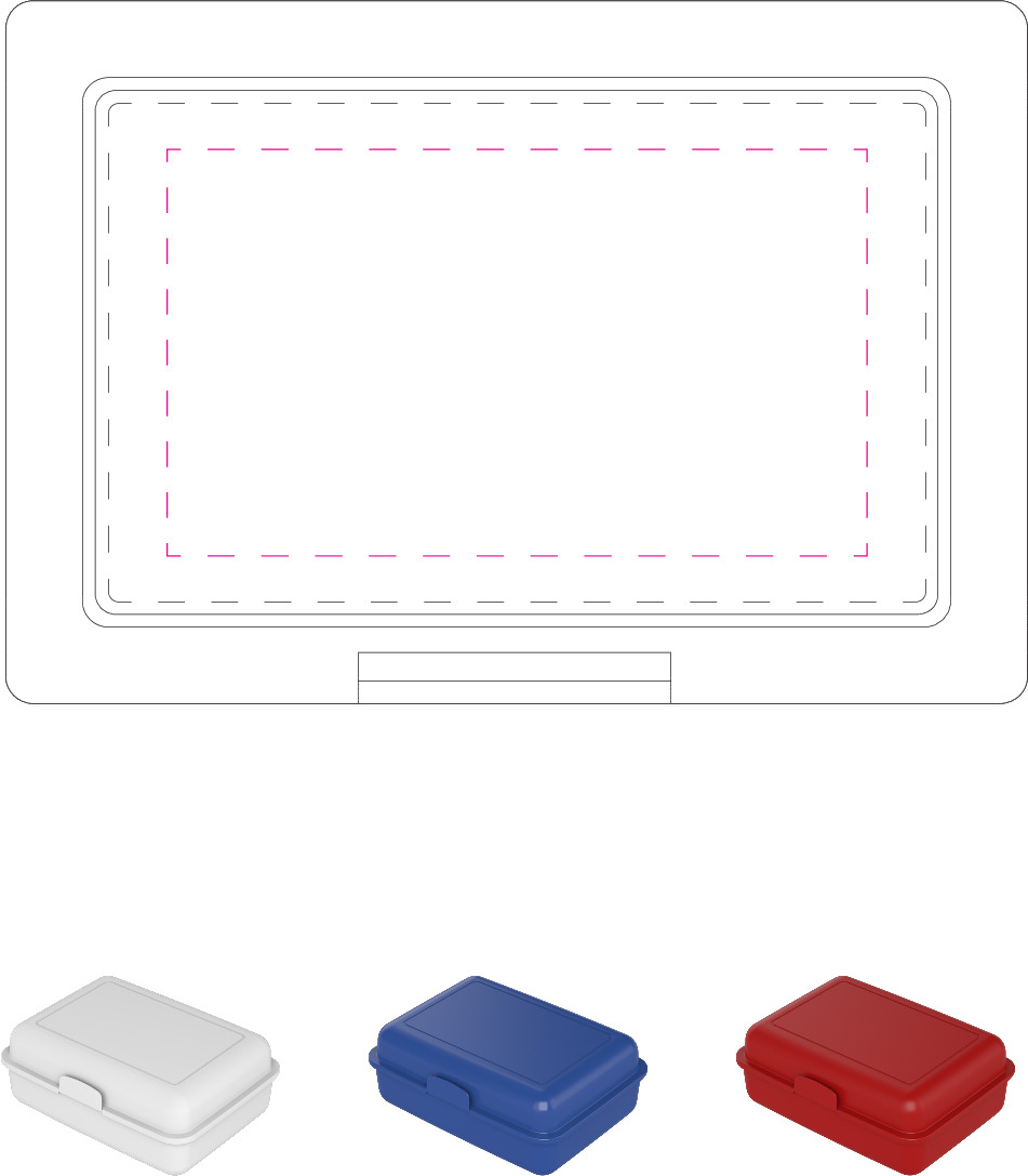 Die ideale Box für das Pausenbrot – mit Klickverschluss sicher verschließbar. In vielen Farben erhältlich und optimal für die Veredelung per IMould-Verfahren geeignet.Material: KunststoffMaße: 125 x 85 x 40 x Ø: 0,00 mmGewicht: 65 gDruckmöglichkeitenPosition 1: Oben mittigDruckart: SiebdruckDruckgruppe: DBMaximale Farben: 5Breite: 100 mmHöhe: 57 mmPosition 2: Unten mittigDruckart: SiebdruckDruckgruppe: DBMaximale Farben: 5Breite: 70 mmHöhe: 60 mm