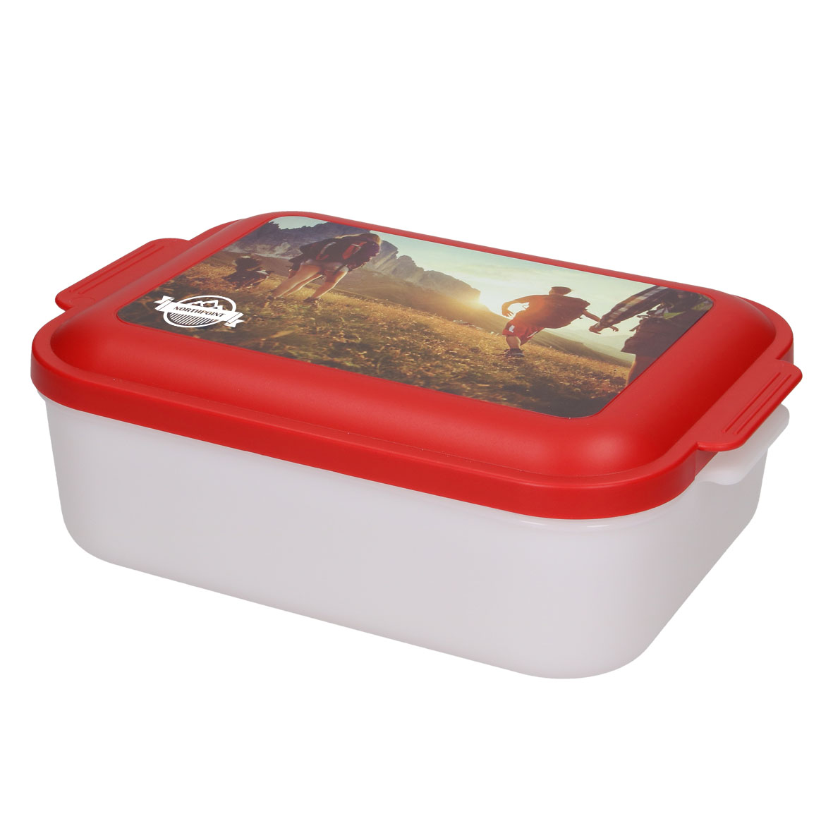 Frischhaltebox in verschiedenen Farbkombinationen lieferbar. Mikrowellengeeignet bis zu +120°C, sowie für den Gefrierschrank bis -20°C verwendbar. Mit Deckel und 2 praktischen Haltegriffen. Füllmenge: 1,5 Liter.Material: KunststoffMaße: 233 x 162 x 65 x Ø: 0,00 mmGewicht: 261 gDruckmöglichkeitenPosition 1: Auf DeckelDruckart: SiebdruckDruckgruppe: DCMaximale Farben: 5Breite: 150 mmHöhe: 95 mm