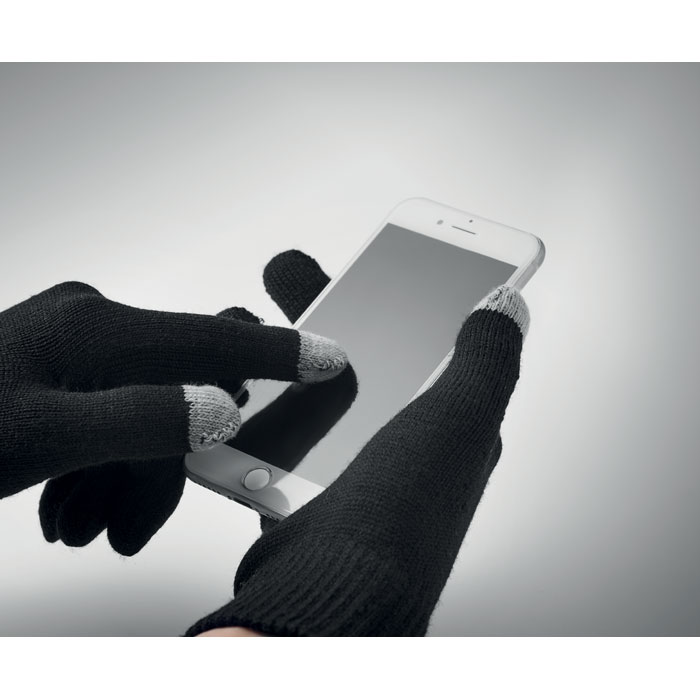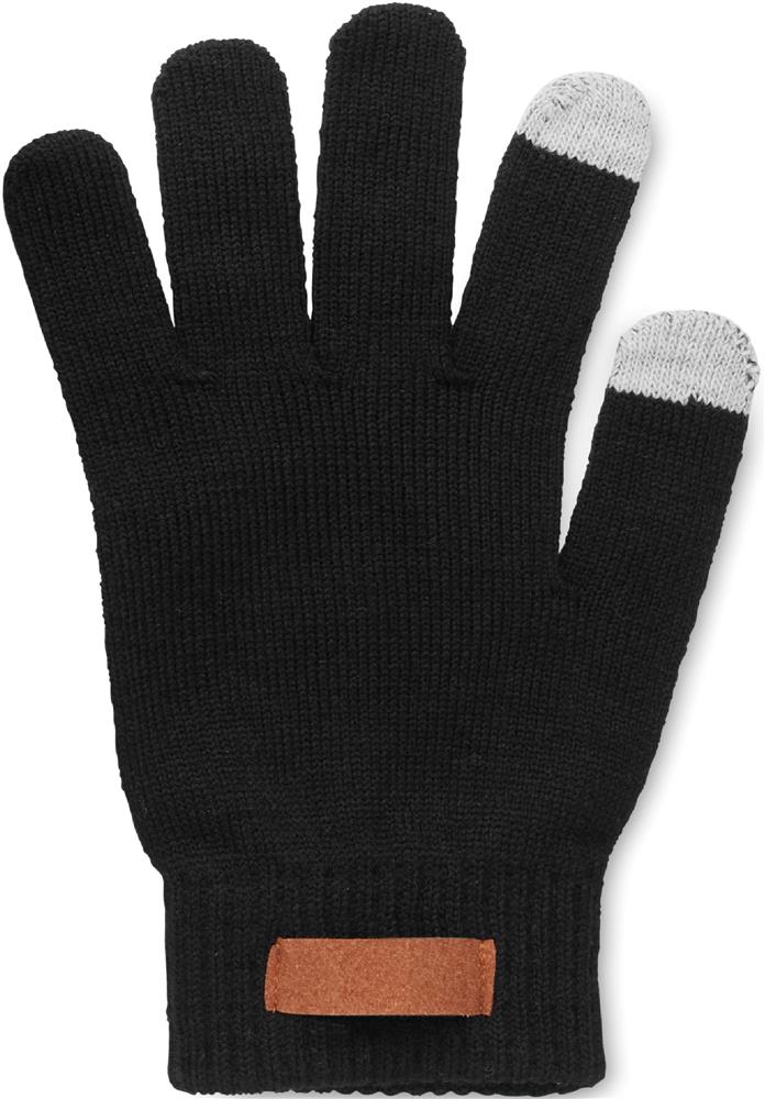 Handschuhe 'Touch' aus PolyacrylDaumen, Zeige- und Mittelfinger zur Touch-Screen-Funktion geeignetLieferung ohne Inhalt/DekoMaterial: 95% Polyacryl, 5% ElasthanGewicht: 0.043Veredelung: Bestickung, Bedruckung, BeflockungFarbe: BlackGröße: 22 x 10,5 x 1,9 cm