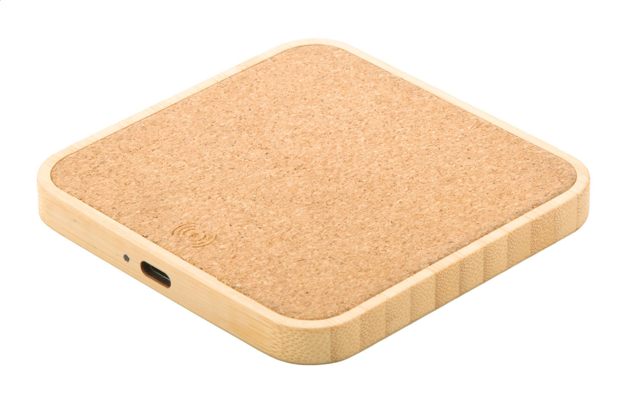 Wireless-Fastcharger (15W) aus Bambus und nätürlichem Kork. Inkl. USB-Ladekabel.