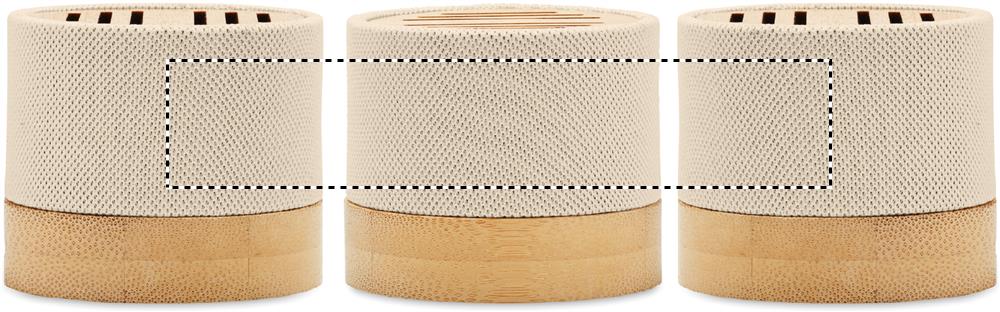 5.0 wireless Lautsprecher in RPET-Gehäuse mit Bambus. Mit LED- Lichtanzeige sowie SD-Kartenslot und AUX-/USB-Kabel. Freisprechfunktion. Inkl. 1 wiederaufladbarer Li-ION-Akku mit 300 mAh. Ausgangsdaten: 3 W, 3 Ohm und 5 V. Spielzeit ca. 3h. Bambus ist ein natürliches Produkt, es kann daher zu leichten Abweichungen in Farbe, Dekor und Maßen kommen.Material: AndereMaße: Ø6,1x5,3 cmGewicht: 0.14 kgVeredelung: Bestickung, Bedruckung, BeflockungHandling/Farbcodes: B/06, 13, 41, 03Druckposition: ROUNDSCREENDruckmaße: 130 x 25 mmDrucktechniken: RS5Druckposition: SIDE 1Druckmaße: 25 x 10 mmDrucktechniken: L2, P5Druckposition: SIDE 2Druckmaße: 25 x 10 mmDrucktechniken: L2, P5Druckposition: SIDE 3Druckmaße: 25 x 10 mmDrucktechniken: L2, P5Druckposition: TOPDruckmaße: 40 x 6 mmDrucktechniken: L2, DO1
