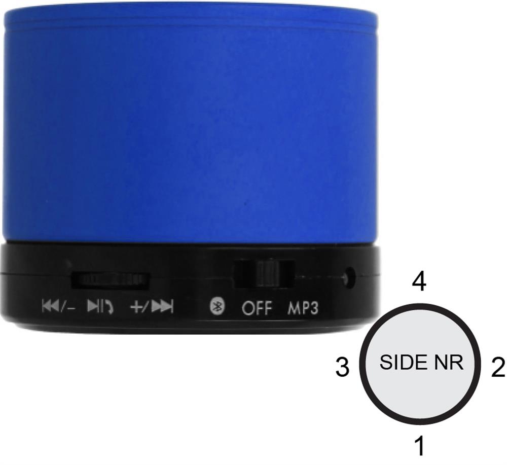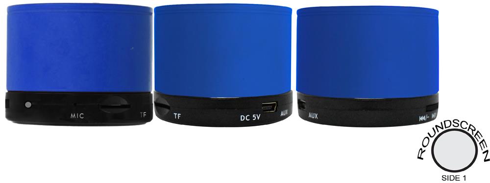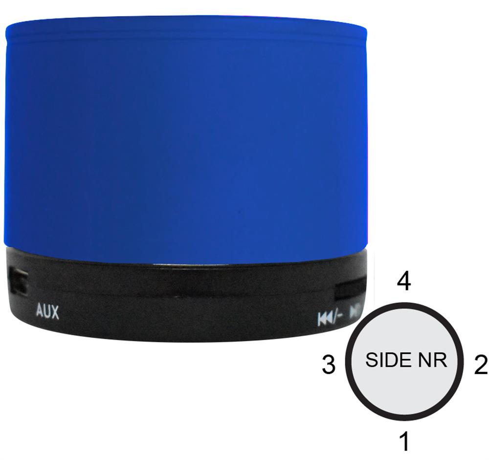 Runder 5.1 wireless Lautsprecher aus ABS in gummiertem Finish. Mit Rufannahme-Funktion. Inklusive SD-Card Port und einem AUX/ USB Kabel. Inklusive 1 wieder aufladbare Lithium 450mAh Batterie. Ausgangsleistung: 3W, 3 Ohm und 5V.Material: BatterieMaße: Ø6x4,9 cmGewicht: 0.219 kgVeredelung: Bestickung, Bedruckung, BeflockungHandling/Farbcodes: B/03, 05, 10, 16, 37, 48, 06Druckposition: SIDE 1Druckmaße: 30 x 26 mmDrucktechniken: L3, P5Druckposition: SIDE 2Druckmaße: 30 x 26 mmDrucktechniken: L3, P5Druckposition: SIDE 3Druckmaße: 30 x 26 mmDrucktechniken: L3, P5Druckposition: ROUNDSCREENDruckmaße: 130 x 25 mmDrucktechniken: RS5Druckposition: TOPDruckmaße: 45 x 45 mmDrucktechniken: DO1