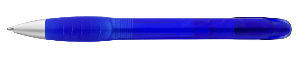 Druckkugelschreiber mit transparent glänzendem Gehäuse, Bogenclipdrücker, ergonomischer Gummigriffzone und Metallspitze mattverchromt.Druckbereich: Auf dem Clip 38mm x 8mm Tampondruck (T), in Clipverlängerung 20mm x 20mm Siebdruck (S), gegenüber vom Clip 50mm x 14mm Siebdruck (S), seitlich vom Clip 50mm x 14mm Siebdruck (S)