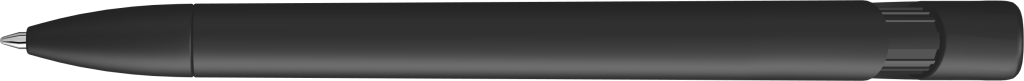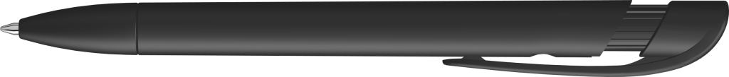 Druckkugelschreiber mit gedeckt mattem Gehäuse, breitem Bogenclipdrücker und Spitze.