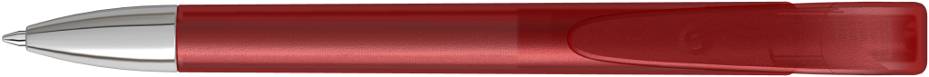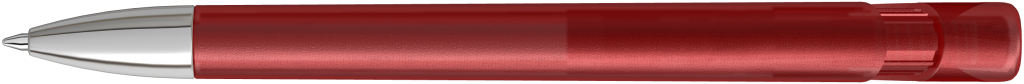 Druckkugelschreiber mit transparent gefrostetem Gehäuse, breitem Bogenclipdrücker und silberner Spitze glanzverchromt.