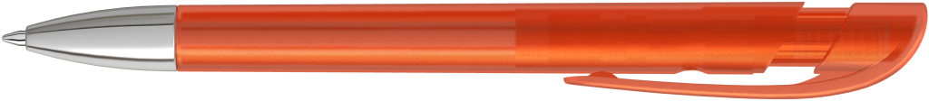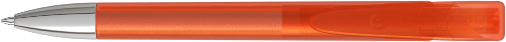 Druckkugelschreiber mit transparent gefrostetem Gehäuse, breitem Bogenclipdrücker und silberner Spitze glanzverchromt.