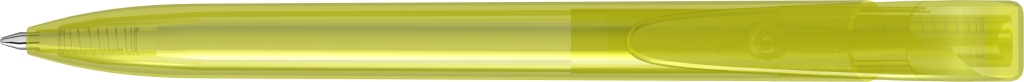 Drehkugelschreiber mit transparent gefrostetem oder gedeckt mattem Gehäuse, Bogenclip silber matt und schwerer Metallspitze matt verchromt.Druckbereich: Auf dem Clip 38mm x 8mm Tampondruck (T), in Clipverlängerung 45mm x 20mm Siebdruck (S), gegenüber vom Clip 45mm x 20mm Siebdruck (S), seitlich vom Clip 45mm x 20mm Siebdruck (S)