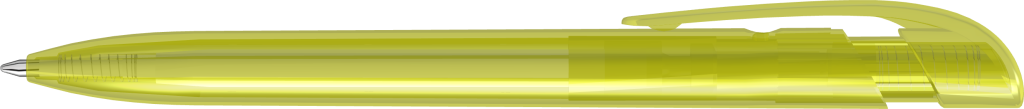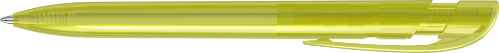 Druckkugelschreiber mit transparent glänzendem Gehäuse und breitem Bogenclipdrücker.Druckbereich: Auf dem Clip 35mm x 6mm Tampondruck (T), in Clipverlängerung 55mm x 27mm Siebdruck (S), gegenüber vom Clip 70mm x 13mm Siebdruck (S), seitlich vom Clip 70mm x 13mm Siebdruck (S)