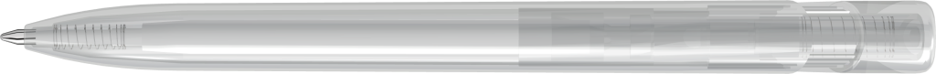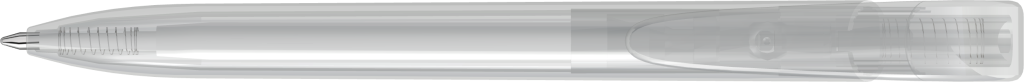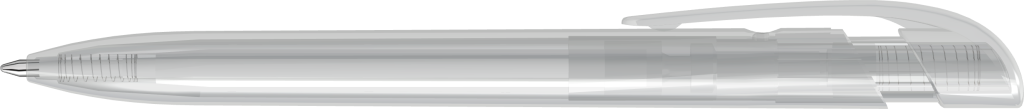 Druckkugelschreiber mit transparent glänzendem Gehäuse und breitem Bogenclipdrücker.Druckbereich: Auf dem Clip 35mm x 6mm Tampondruck (T), in Clipverlängerung 55mm x 27mm Siebdruck (S), gegenüber vom Clip 70mm x 13mm Siebdruck (S), seitlich vom Clip 70mm x 13mm Siebdruck (S)