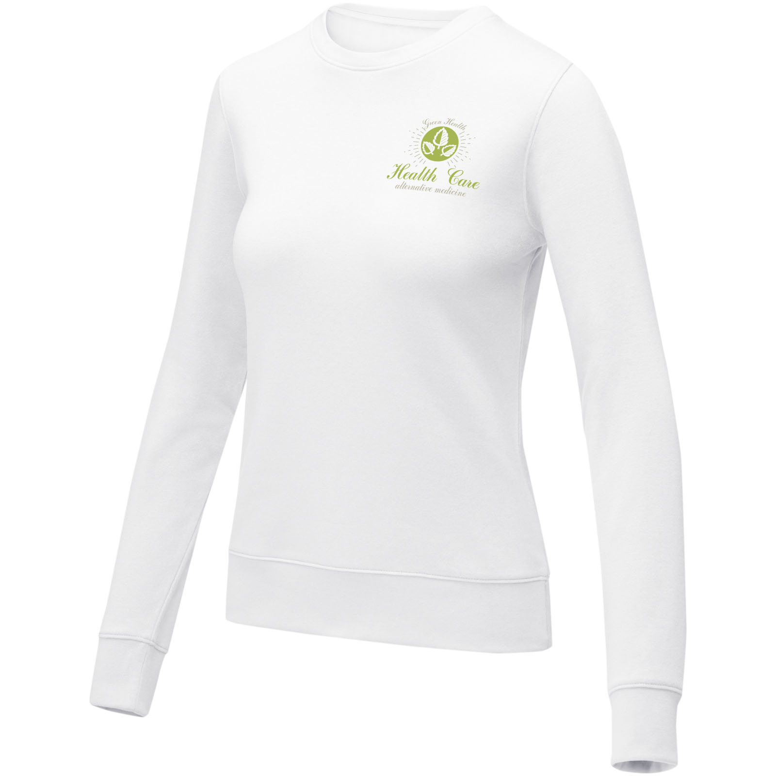 Der Zenon Damenpullover mit Rundhalsausschnitt kombiniert Komfort mit einem klassischen Design. Hergestellt aus einer 240 g/m² schweren Mischung aus Baumwolle und Polyester. Der klassische Rundhalsausschnitt wird durch flach gestrickte Rippdetails am Kragen, an den Ärmelbündchen und am unteren Saum akzentuiert, die für einen bequemen Sitz und einen Hauch von Raffinesse sorgen. Außerdem können Sie die Innenseite des Pullovers mit Ihrem persönlichen Branding versehen. Die gebürstete Innenseite sorgt für zusätzliche Gemütlichkeit und ist damit perfekt für kältere Tage. Mit seinem durchdachten Design und den hochwertigen Materialien ist der Zenon Pullover ein vielseitiges Essential, das Ihrem Look einen Hauch von Individualität verleiht und gleichzeitig für maximalen Komfort sorgt. Dieser Pullover hat eine taillierte Form für einen femininen Look.